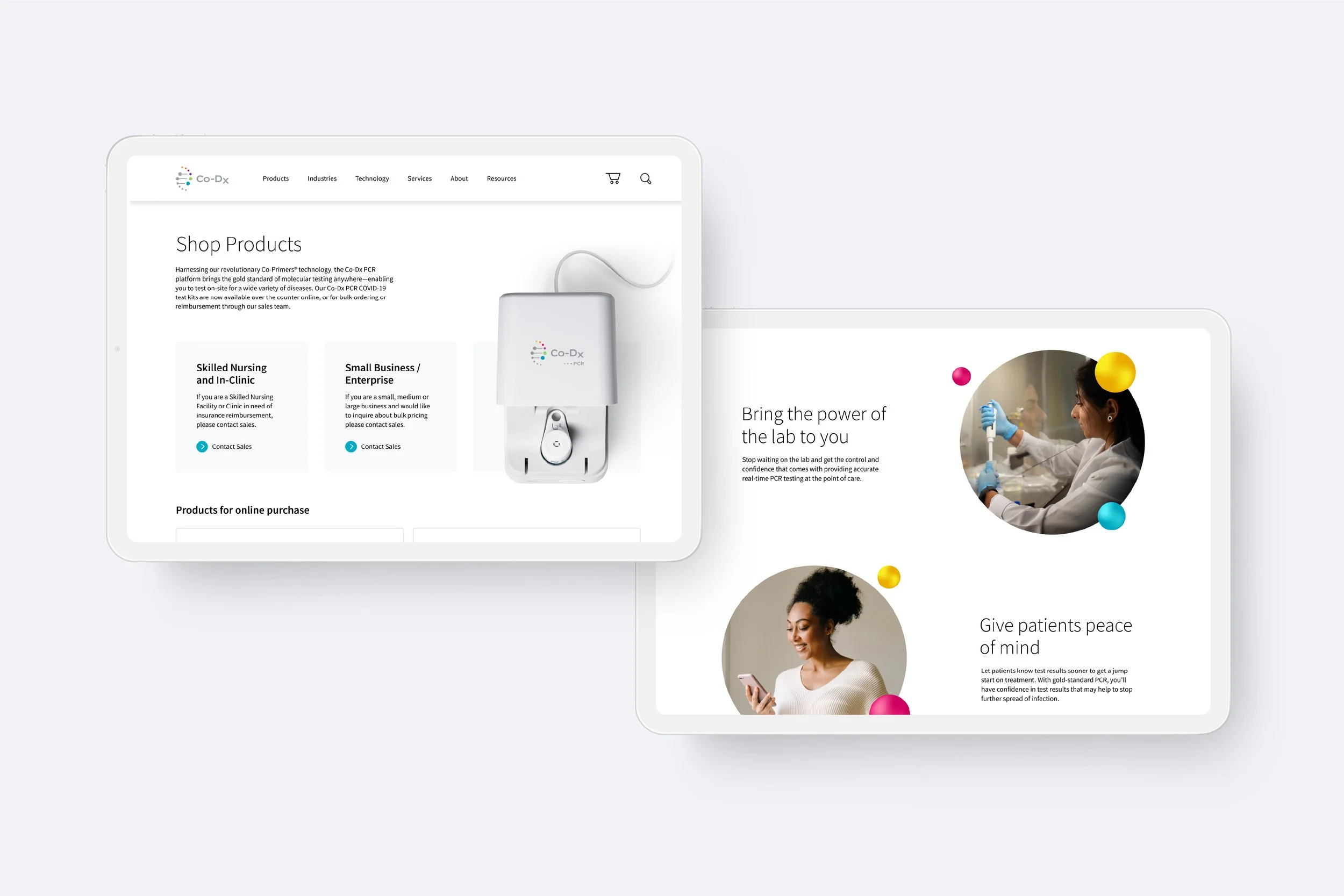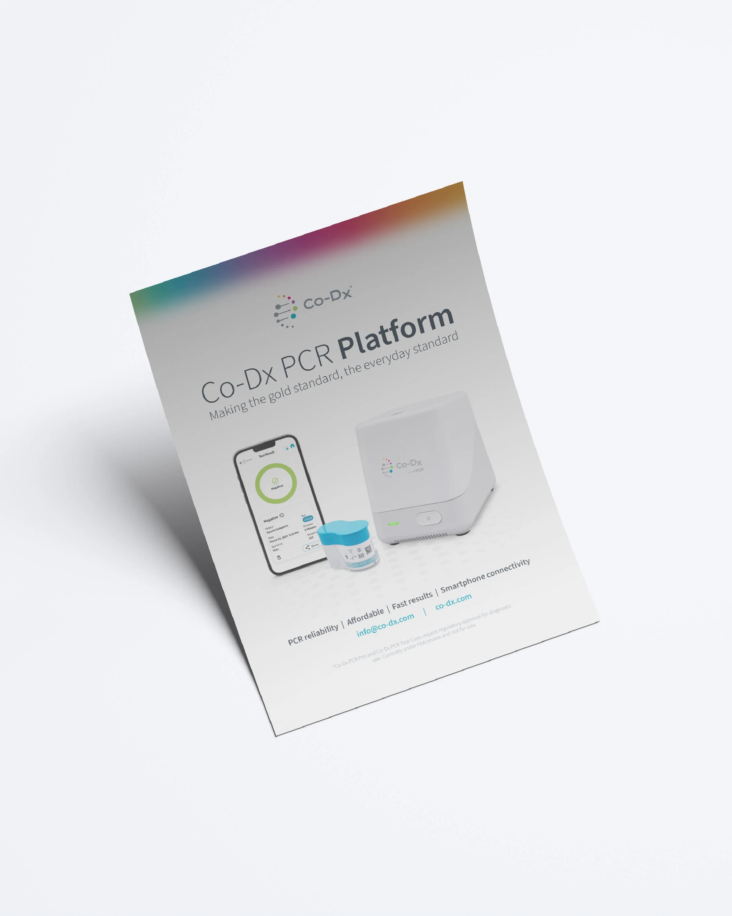 Co-Dx, a medical device company, developed an affordable, compact PCR testing device that delivers results in under 30 minutes—eliminating the need for lab processing. Their goal was to market this innovation to medical professionals, businesses, and consumers. I played a key role in refining their brand identity and executing a range of design initiatives.